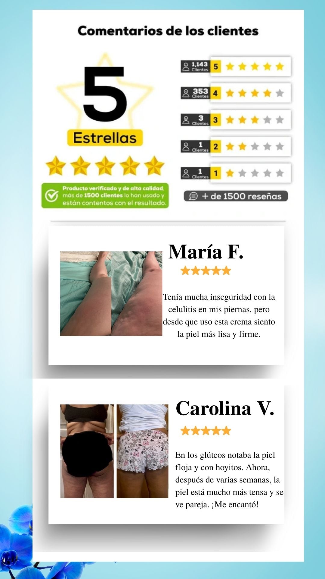 8 de cada 10 usuarias notaron que la apariencia de la celulitis en sus piernas disminuyó y su piel se sintió más firme después de aplicarla.
