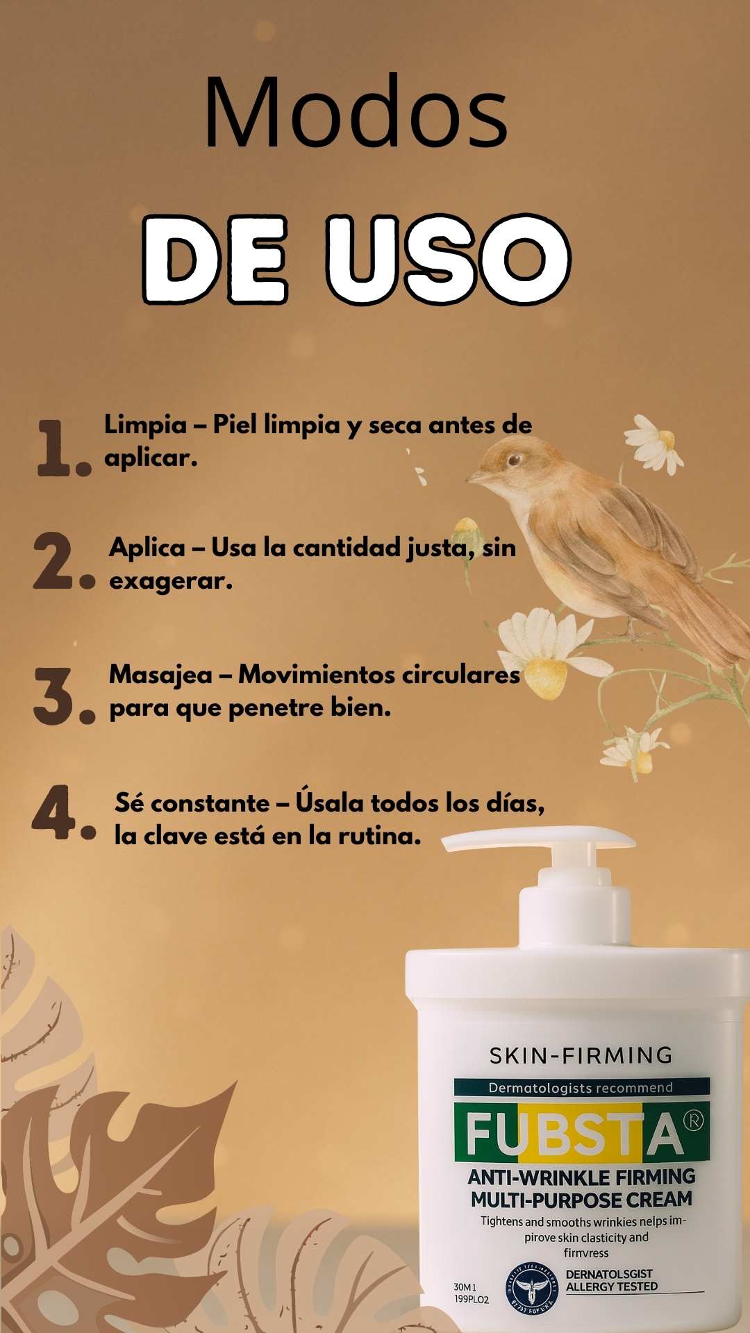 Sí, puede combinarse con sueros, cremas hidratantes o tratamientos reafirmantes, siempre aplicando FUBSTA® como paso final para sellar la hidratación.