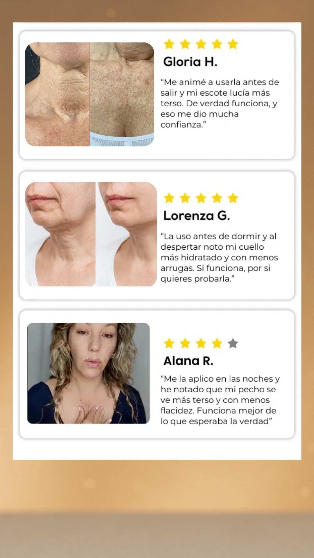 90% de las mujeres aseguran que su piel luce más suave, elástica y rejuvenecida.