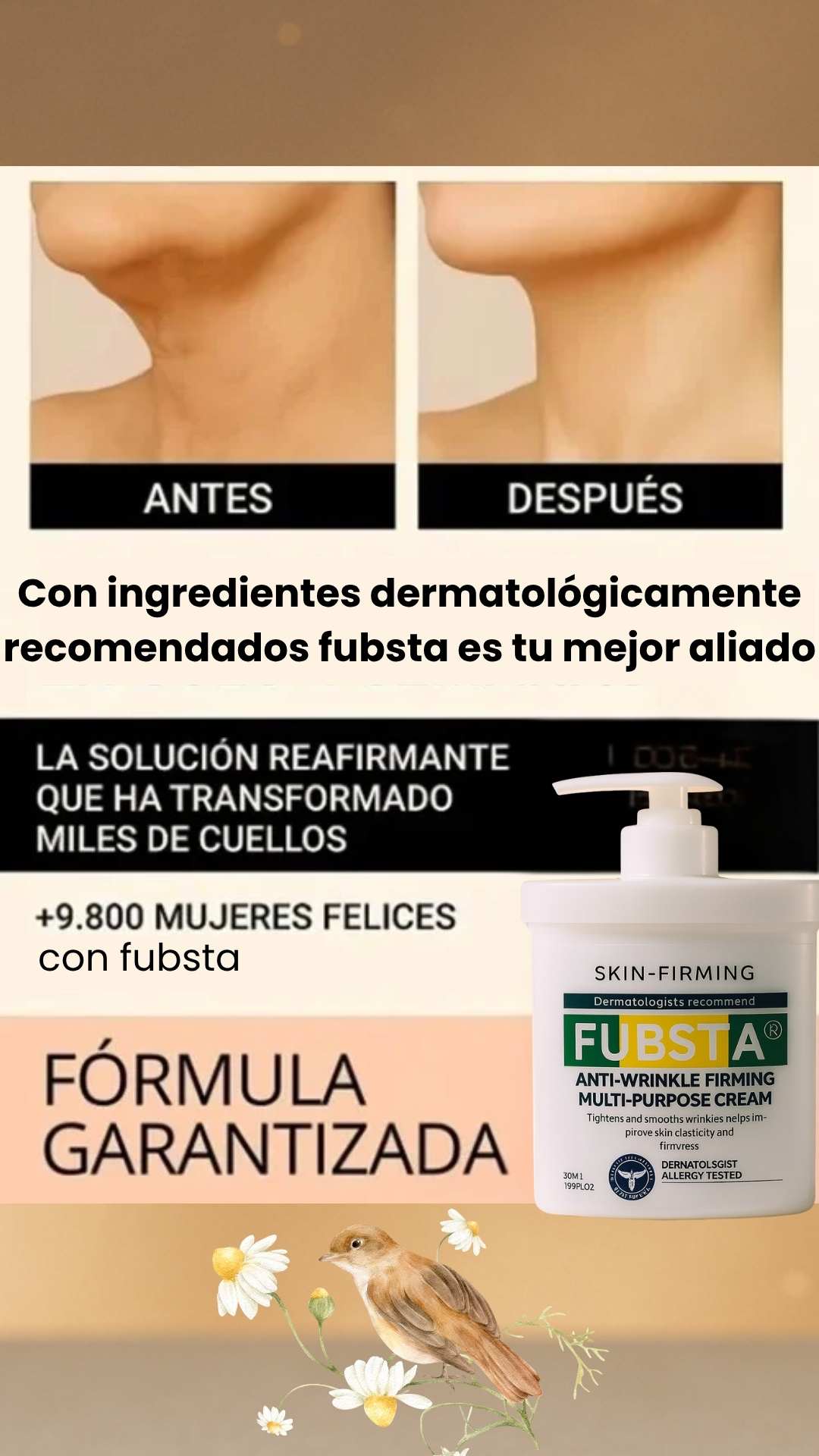 8 de cada 10 usuarias notaron su piel más firme y tonificada en cuello y escote después de aplicar FUBSTA®.